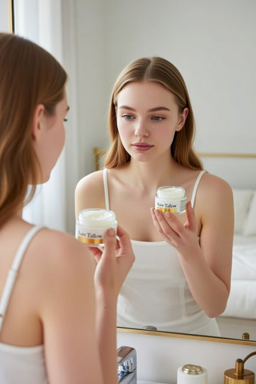 Unlike water-based moisturizers that sit on the surface, tallow is nearly bioidentical to human sebum. This allows your skin to instantly recognize and absorb the moisture, repairing your skin barrier from the inside out without clogging pores or leaving a greasy residue.
